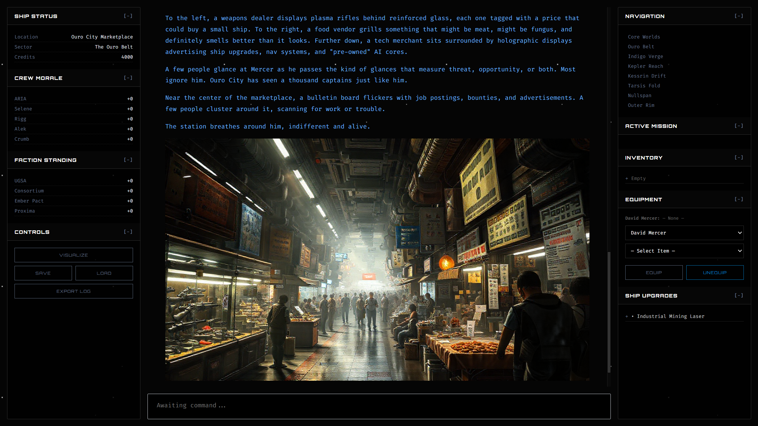 Marketplaces and independent traders are where the galaxy's goods change hands—ship components, medical supplies, data chips, survival gear, and almost anything else the Greywake might need.